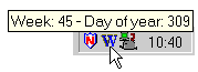 - If the mouse pointer is over the calendar week, the calendar week and the current day of the year is displayed.