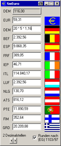 ein einfacher EURO-Rechner für Windows 95, 98, Me, NT, 2000, XP und Windows CE