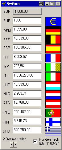 ein einfacher EURO-Rechner für Windows 95, 98, Me, NT, 2000, 2003, XP (32 + 64 Bit) und Windows CE